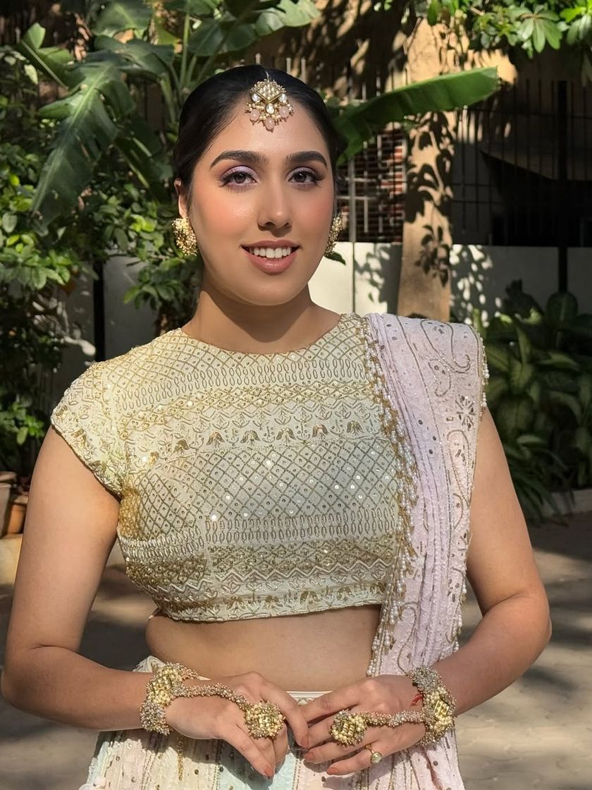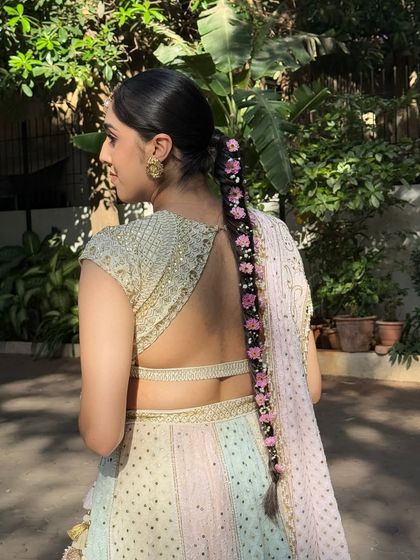 For your vibrant daytime ceremonies, I create looks that are fresh, glowing, and full of life. I love using rose-toned or golden palettes, and often incorporate beautiful floral accessories and intricate braids that are perfect for outdoor celebrations in the Mumbai heat.