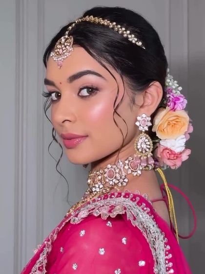 For your engagement, roka, or cocktail party, the vibe is often chic and modern. I create soft, glowing looks with a touch of glam that perfectly complement pastel lehengas, elegant gowns, and contemporary sarees, ensuring you look effortlessly beautiful.