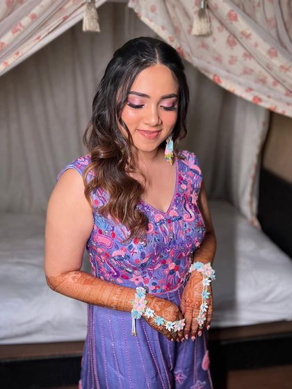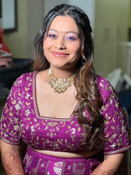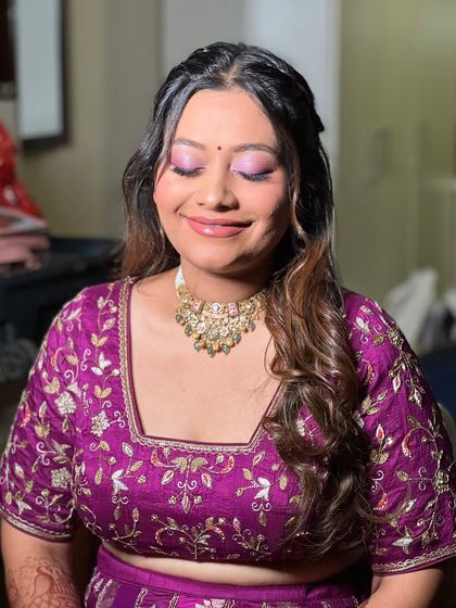 I specialize in creating vibrant and festive makeup looks perfect for sangeet celebrations. My style emphasizes bold colors and playful elements that match the lively atmosphere of pre-wedding celebrations, while still maintaining a balanced and elegant appearance.