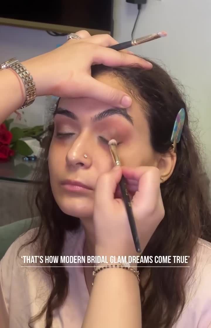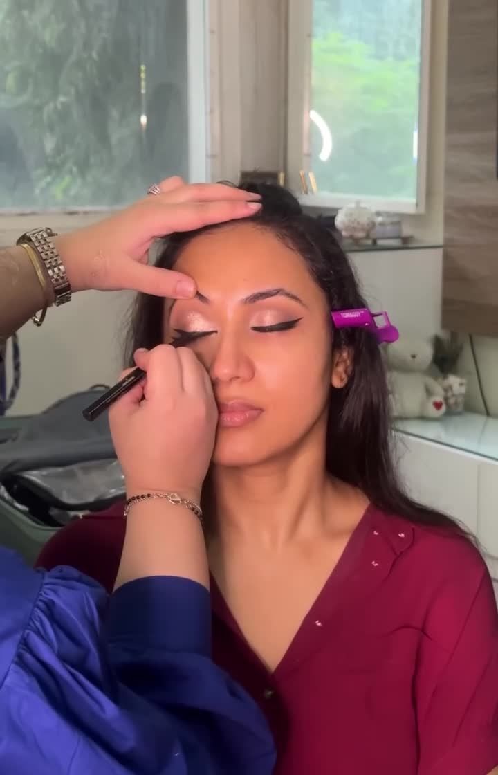 This is for the modern bride who loves metallics and luminous skin. I specialize in creating molten gold magic with sculpted, flawless bases and eyes that shimmer, perfect for sangeet, reception, or even the main wedding day.