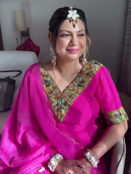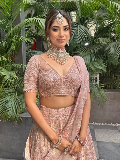 My signature is the classic, radiant bride. I specialize in creating looks that are elegant and enduring, whether you're wearing a traditional red lehenga or a beautiful pink ensemble for your phera ceremony. My focus is on flawless, glowing skin and enhancing your features so you feel beautiful and confident.