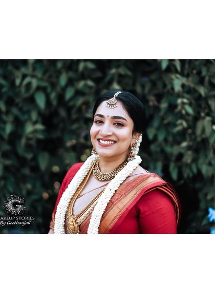 Hey, we’re Geethanjali Makeup Studio & Academy. Started in Bangalore, picked up tricks in London, brought it all back home. We believe makeup should be real, not cakey - you, just a bit more luxe. That feeling when a bride looks in the mirror, smiles like she’s royalty? That’s why we do this. Teaching’s our other love. Our academy’s buzzing, and hearing 'class tumba chennagittu' (class was very good) makes us proud. We’re here for the stories, not just the faces.