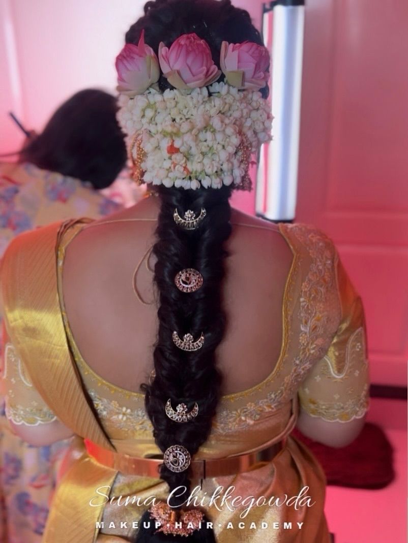 A bridal look is only complete with the right hairstyle. My certified course includes over 45 distinct styles, from traditional braids adorned with fresh flowers and billas to modern updos and romantic curls. We provide hands-on practice for every style.