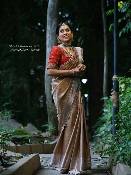 This is my signature service, perfected over 20 years in the Sandalwood industry. I focus on creating a timeless, water-resistant base that looks like real skin, not paint, paired with classic elements like temple jewelry and Kanjeevaram sarees. In my course, you will master these evergreen muhurtham and traditional looks.