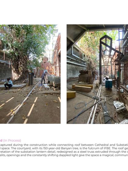 In Mumbai, I helped revive a 147-year-old ice factory, now IF.BE. Clearing the clutter let a banyan tree breathe again, and the new steel roof talks to the old brick — not just covering it up. The light shifts all day, giving the place its own mood.