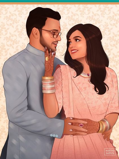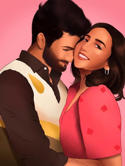 Think Disney-inspired portrait art, but with all the desi feels. I’m all about warm, expressive digital illustrations that tell a story. Whether it's a goofy childhood memory or a dramatic couple moment, I try to capture the emotion behind it. Everything’s drawn on my iPad, so I can switch between cute, cartoonish looks and more semi-realistic styles, depending on the mood.