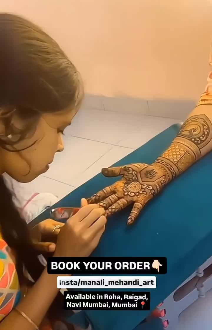 I provide home service in Roha, Raigad, Navi Mumbai, and surrounding areas, bringing my art to you. Here is a glimpse into my process, from drawing the design to using fresh, handmade cones for every client.