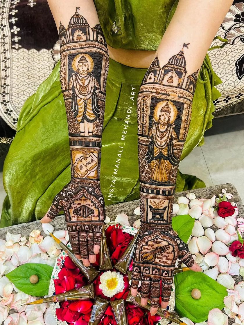I can turn your favorite photos into unique mehandi art, a skill I am very passionate about. This includes couple portraits for engagements, baby portraits for showers, deity figures for festivals, or even portraits of public figures.