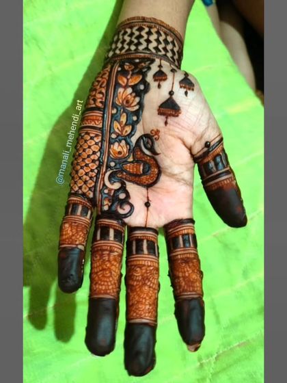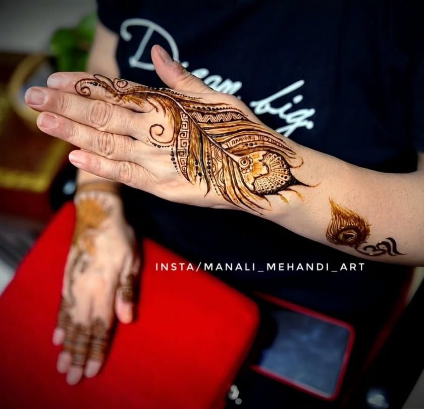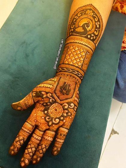 I specialize in creating mehandi that tells a story. Whether it's incorporating religious figures for a pooja, traditional wedding symbols, or your own unique ideas, I can create personalized artwork for any occasion.