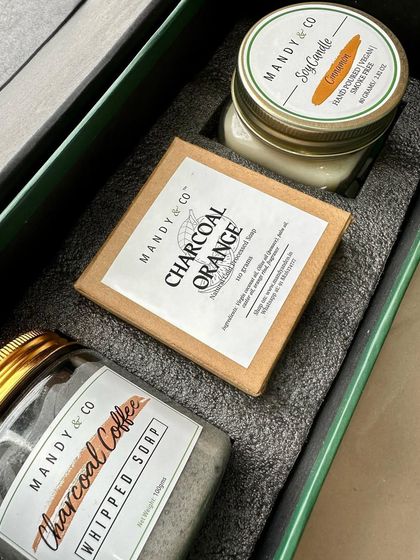 We make custom gift hampers with handmade soaps and candles, tailored to your theme or occasion, using eco-friendly materials and small batch production.