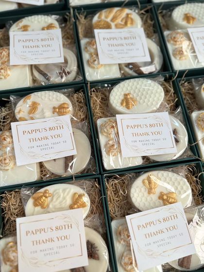 For grown-ups, I create elegant keepsakes like cottagecore daisy candles or sophisticated gold-and-white sets for milestone birthdays. Colors and packaging can be tweaked to match your vibe.
