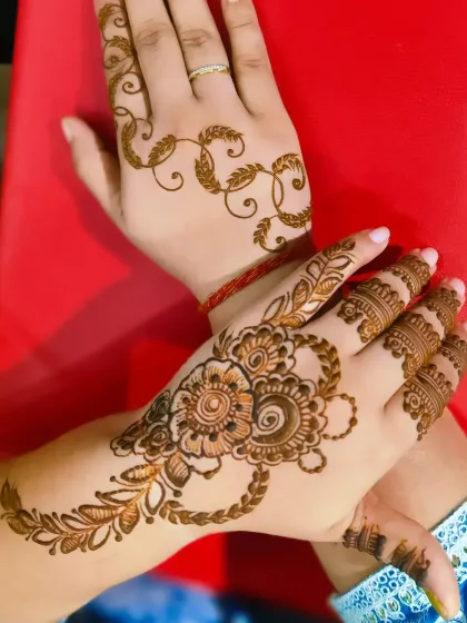 I create custom mehndi designs for any occasion using natural henna, offer quick service, and come to your home anywhere in Mumbai.