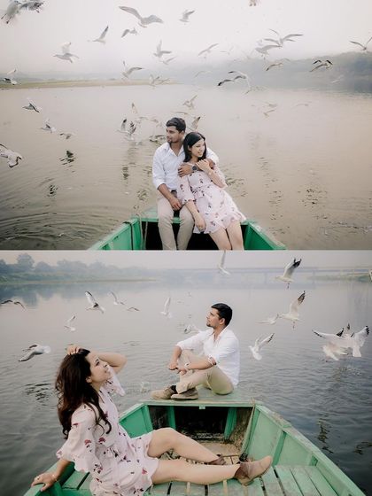 There's something magical about shooting by the water. We can plan a session at locations like the Yamuna Ghat for its famous birds, or find a quiet lake for a serene boat ride. These shoots are always peaceful and incredibly romantic.