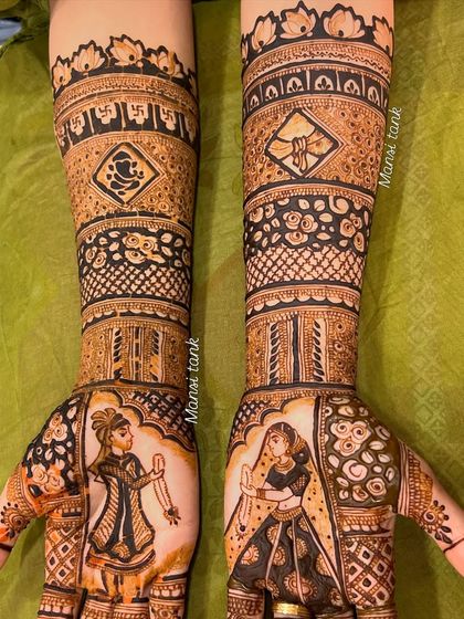 For the classic bride, I create dense and detailed mehendi that covers the hands and arms. These designs are filled with traditional patterns, fine lines, and beautiful motifs for a rich and timeless look.