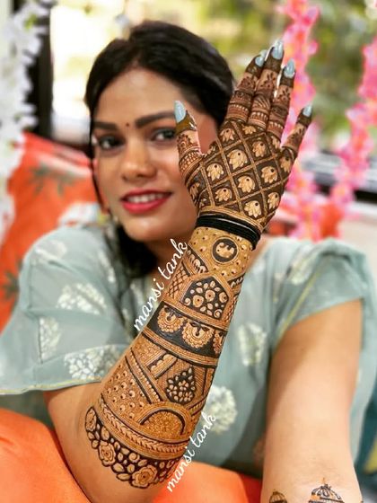 Hi, I’m Mansi. Mumbai ki artist hoon, mehendi, makeup, nails - sab kuch. Art mera sab kuch hai. Heena lagana, especially for brides, that’s my favourite. TV stars ka bhi mehendi kiya hai, like Debina Bonnerjee and Debattama Saha. Har design mein dil laga ke kaam karti hoon. Bride ki muskurahat dekh ke, bas din ban jaata hai. Happy client pics, wah, best feeling!