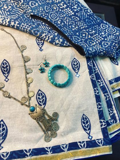 I handpick sarees and ethnic wear from weavers across India, design unique dresses and jewelry, and can also revamp your old sarees with new prints and styles.
