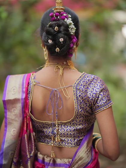 A complete look requires beautiful hair. My course includes professional hairstyling techniques, focusing on elegant updos and traditional styles like the Maharashtrian khopa, perfect for bridal and festive occasions.