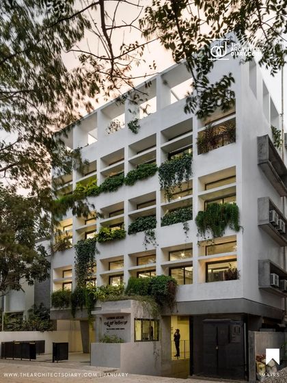 Our commercial projects feature elements like integrated urban gardens, amphitheaters, and grid-like facades that promote natural ventilation while maintaining aesthetic appeal.