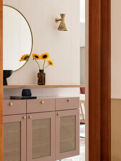 In this 2000 sq ft apartment renovation, we aimed to create a space that feels deeply rooted in tradition while embracing contemporary sensibilities. We used a material palette of exposed brick, teak wood, cane, and terrazzo to establish a warm, textured, and timeless home.