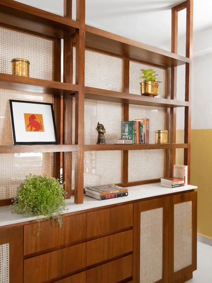 For this 1250 sq ft apartment in a 20-year-old building, the brief was to evoke the warmth and functionality of a traditional Karnataka 'Mane' (home). We transformed the dark, compartmentalized layout by opening up the living, dining, and kitchen areas to improve light and flow, using a palette of terrazzo, teak, and rattan.