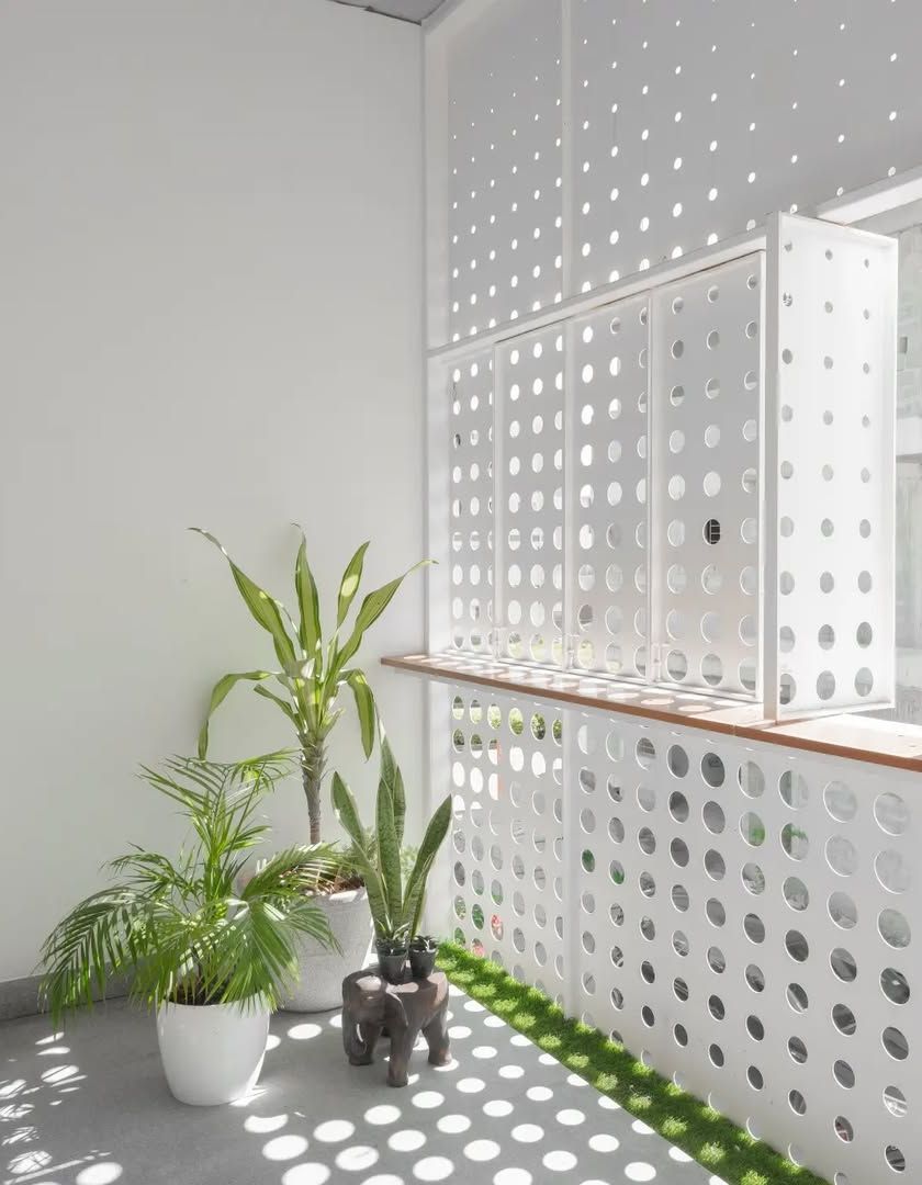 Located on a compact urban plot, this project accommodates a rental unit and a three-bedroom family home. The design centers around a triple-height light well and features a dynamic, operable perforated metal screen on the facade to control light and privacy.