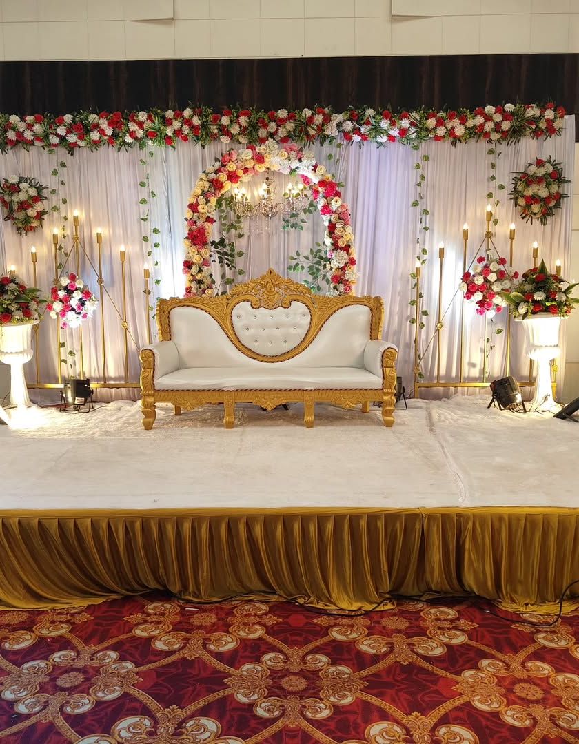 I provide complete stage and entrance decoration for weddings and engagements. My service includes elegant backdrops with floral arrangements, luxurious seating for the couple, and integrated ambient lighting to create a picture-perfect setting for your special day.
