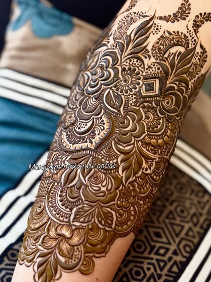 I specialize in bold Arabic mehendi designs characterized by flowing floral motifs and detailed line work. My designs feature elegant patterns that make a striking statement while maintaining traditional Arabic aesthetics.