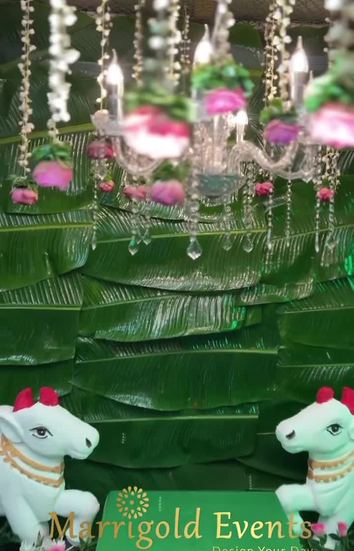 We design wedding mandaps that are both beautiful and spiritually significant, honoring your traditions. We specialize in various cultural styles, including South Indian decor with banana leaves and temple bells, and traditional setups using marigolds and jasmine.