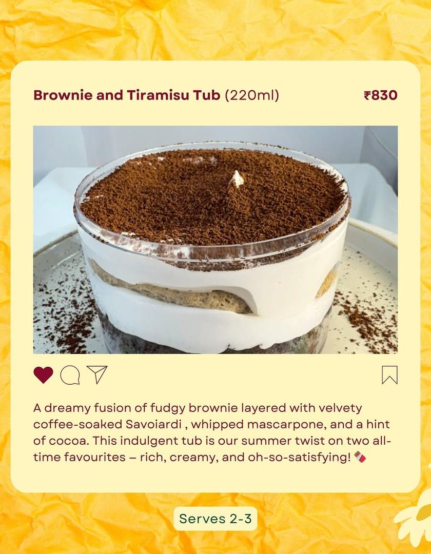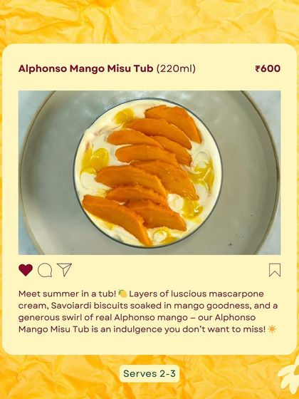 Dive into layers of pure happiness with my dessert tubs. I offer decadent options like classic Tiramisu and seasonal specials like Mango Misu, all made with real ingredients for a rich, satisfying treat that serves 2-3 people.