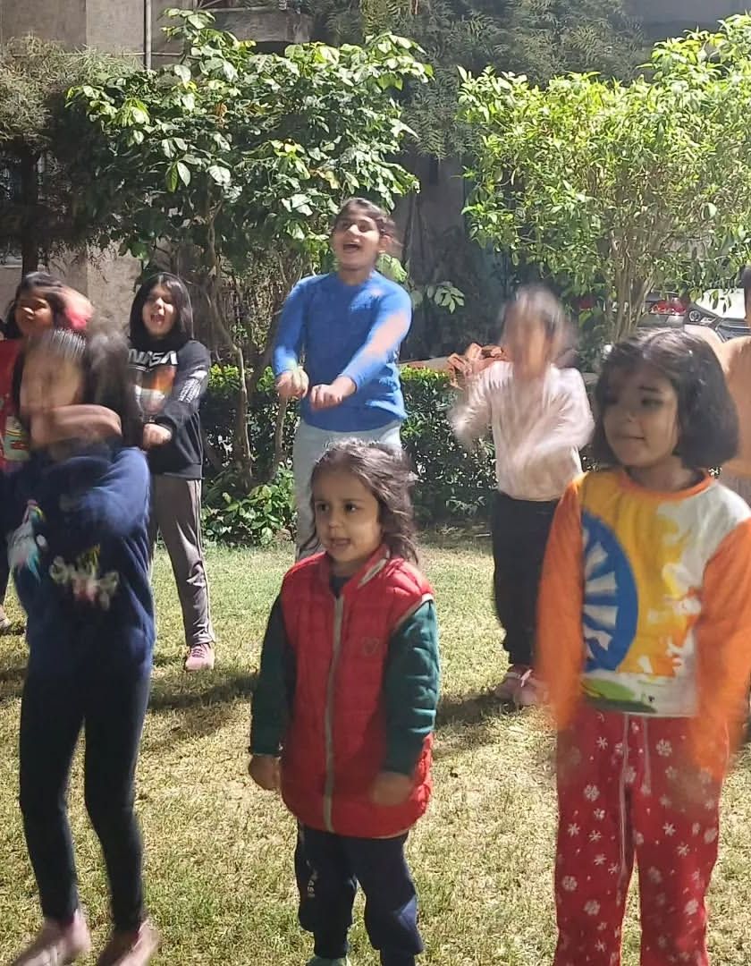 I run special batches and camps for kids, often outdoors in society parks like this one in Patparganj. The training helps them build focus, confidence, and a healthy, active habit from a young age.