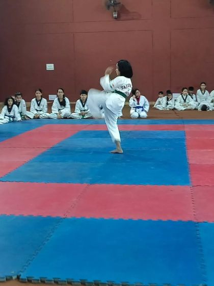 We offer comprehensive Taekwondo training focusing on high kicks, spinning kicks, forms (patterns), sparring, and self-defense techniques. Our classes blend traditional martial art discipline with modern training methods.