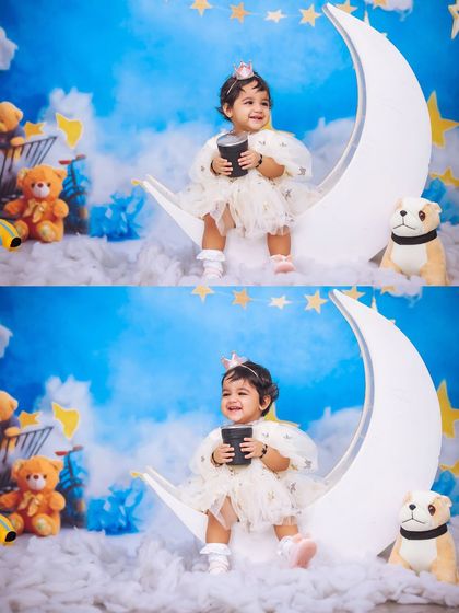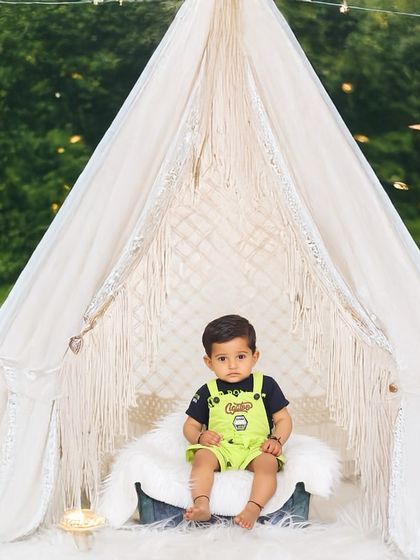 I’ve got props and themes for just about every mood – from magical Harry Potter setups to boho teepees and classic little Krishna outfits. Pick any world, and I’ll set it up. Themed baby photoshoot is my jam.