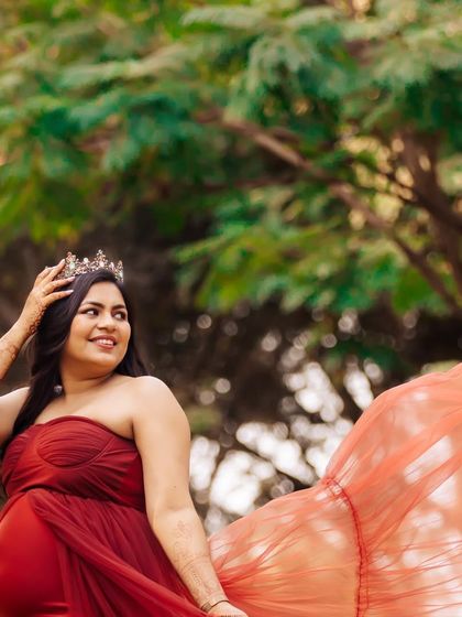 We offer maternity photoshoots with your choice of gowns, themes, and locations, plus help with planning and props so you get photos that match your style and comfort.