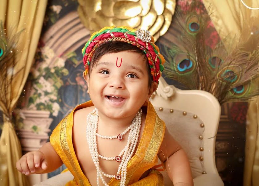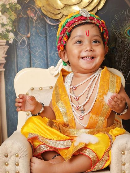 Celebrate tradition with a divine photoshoot for Janmashtami or any special occasion. My studio is equipped with beautiful costumes, traditional props like makhan pots, and elaborate sets to capture the playful and serene spirit of little Kanha and Radha.