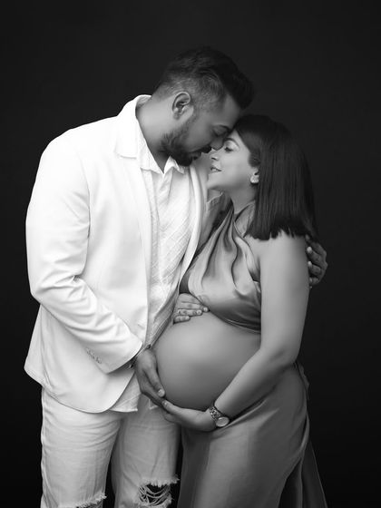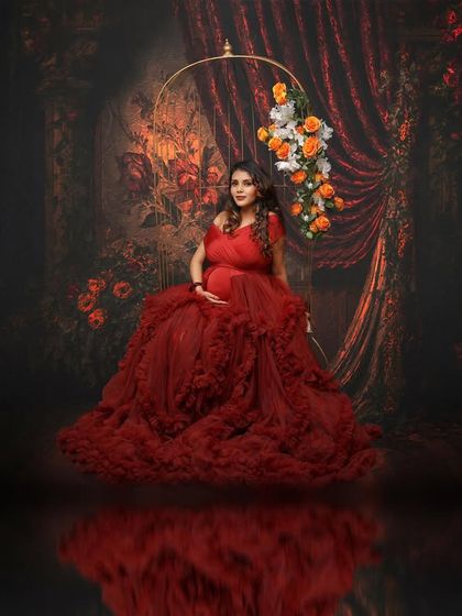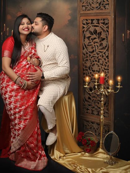 There is a unique elegance in celebrating your pregnancy with traditional Indian attire. I create regal and culturally rich portraits, draping you in beautiful sarees or ethnic wear to honor your heritage while flaunting that baby bump desi style. We use props like carved screens, candelabras, and rich fabrics to complete the look.