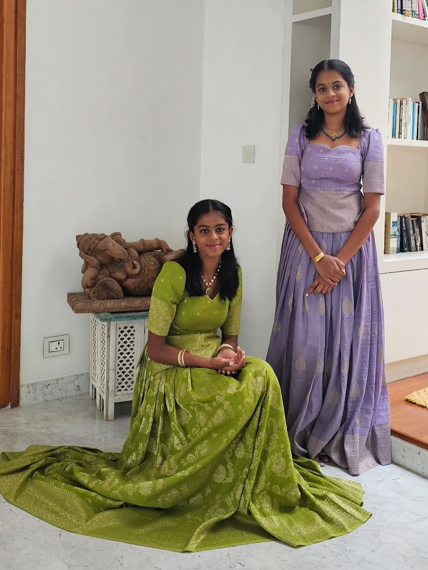 I revive timeless South Indian traditions with my bespoke children's wear. This collection features custom Pattu Pavadai sets and designer kids' lehengas crafted from authentic silks and rich brocades with intricate zari borders, perfect for weddings, festivals, and cultural ceremonies.