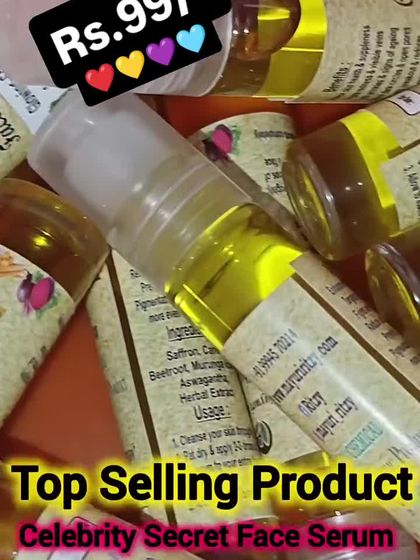 This plant-based face serum is my top seller. Made with seven oils like olive, almond, and sesame, it works for: