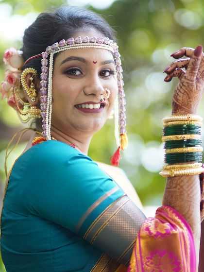 Hi, I’m Mayuri Patil. Makeup and hair is my world – mostly in Thane and Mumbai. I love the magic of Maharashtrian weddings, especially the nath and chandrakor. 'Sundar mishran' (beautiful mix) of simple and elegant, that’s my style. I want you to look like yourself, just glowing a bit more. Your wedding story matters – I’m just here to add a little grace, from Punyavachan vidhi to reception.