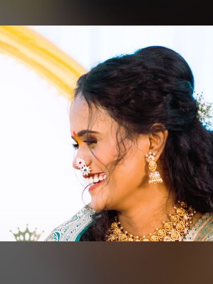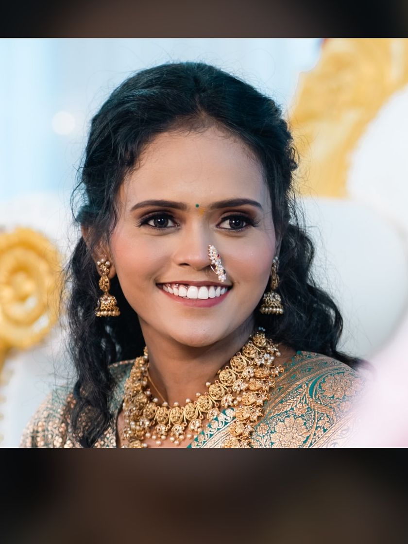 My specialty lies in creating timeless looks for your engagement or Sakharpuda. I blend tradition with modern techniques to give you a radiant glow, whether you envision a classic Maharashtrian look with a Paithani saree and 'naath' or a more contemporary style. This gallery showcases a variety of looks in different traditional sarees like light blue, vibrant green, and rich maroon.