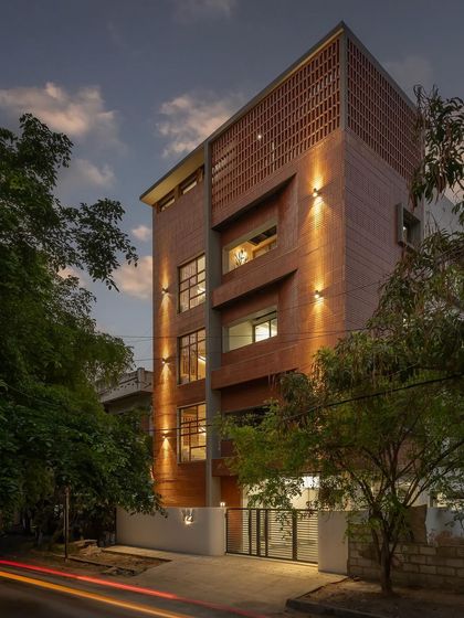 - Signature Facade: Execution of intricate brick patterns like soldier bonds or terracotta jaalis for ventilation.