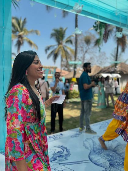 I host all wedding events from sangeet to reception, manage the flow, keep guests engaged, and bring Konkani and cross-cultural traditions to life, whether in Bengaluru or at destination weddings.