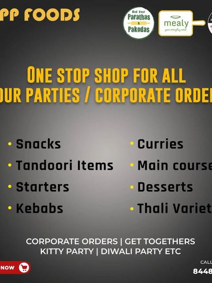 Party & Corporate Orders - Snacks, tandoori, starters, full meals for your events or office lunch. We handle the flavour.