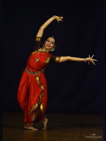 Performances & Classes - I do solo, duet, and thematic Bharatanatyam shows. I teach too—beginners or advanced, online or in-person, all welcome!