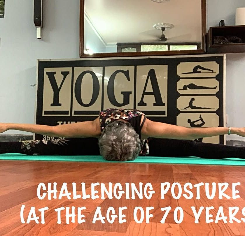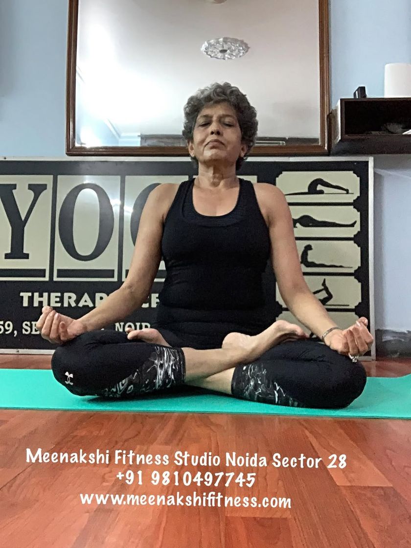 My holistic approach emphasizes that yoga is more than just physical postures. Here you can see my practice of pranayam (breathing techniques) and dhyana (meditation), which are essential for calming the mind, reducing stress, and achieving inner balance.
