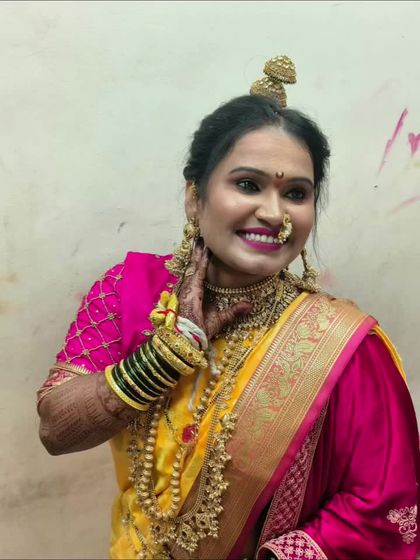 I specialize in creating the perfect *marathmola* bridal look. This includes draping the traditional Nauvari saree for the main ceremony and other styles for different rituals, ensuring every pleat is perfect so you can enjoy your wedding without any stress.