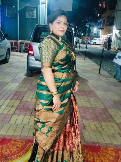 Namaskar! Meenakshi Kambli here, Bombæ chi mulgi (girl from Mumbai). Makeup is my worship, not just a job. I get goosebumps seeing a Maharashtrian bride in Nauvari saree - 'saundaryācī khāṇa bhāsāvī' (she’s a mine of beauty). Once did bridal makeup in Solapur, sunlight madhe kaam kela (worked in sunlight) when lāīṭīcā problem (no lights). Clients’ wishes first, always. Saree draping tricks now in my masterclass too.