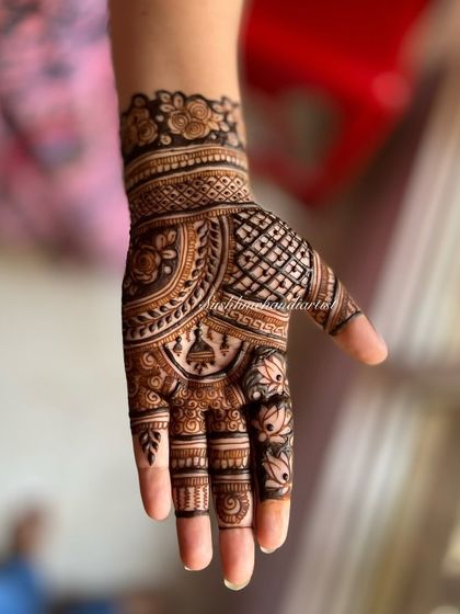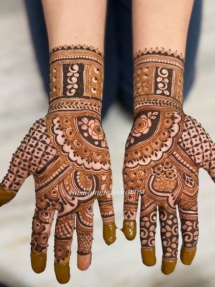 This is for the bride or anyone who loves detailed, full-coverage mehndi. I create traditional Indian designs filled with fine lines, check patterns (jaali), elephants, and peacocks, ensuring every part of your hand and arm tells a beautiful story.
