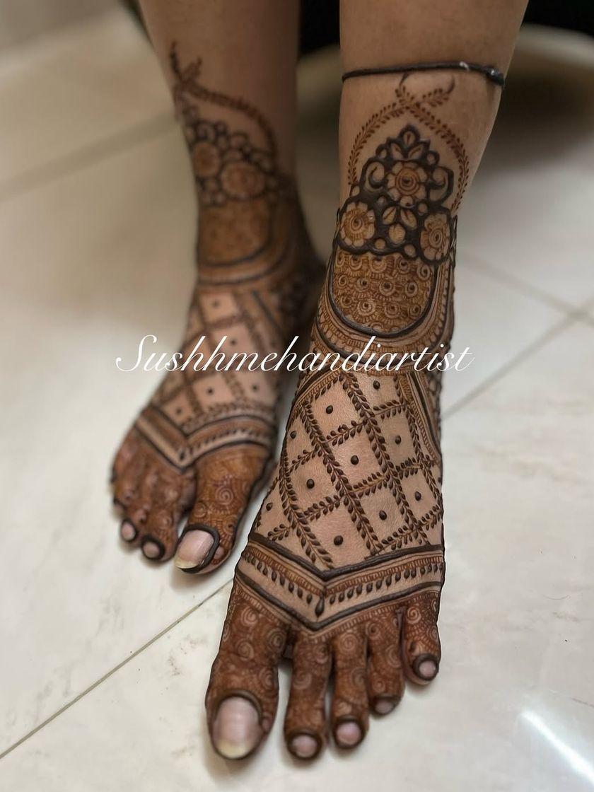 Don't forget your feet! I design beautiful mehndi for feet and legs, from simple, elegant patterns to full bridal coverage. These are perfect for showing off in your wedding footwear or for any festive occasion.