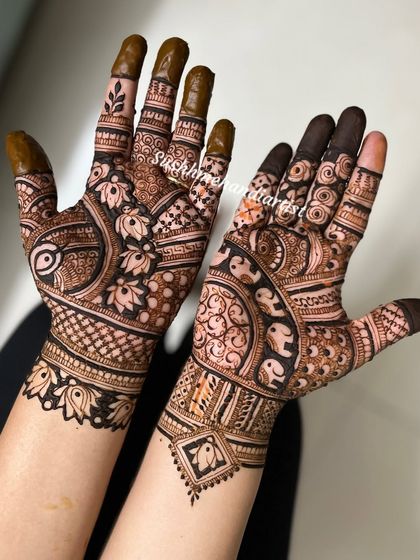This is where you learn to create the full bridal mehandi, from the fingers all the way up the arm. My classes will teach you how to design and apply these intricate patterns, full of traditional symbols, so you can create stunning work for a bride's big day.
