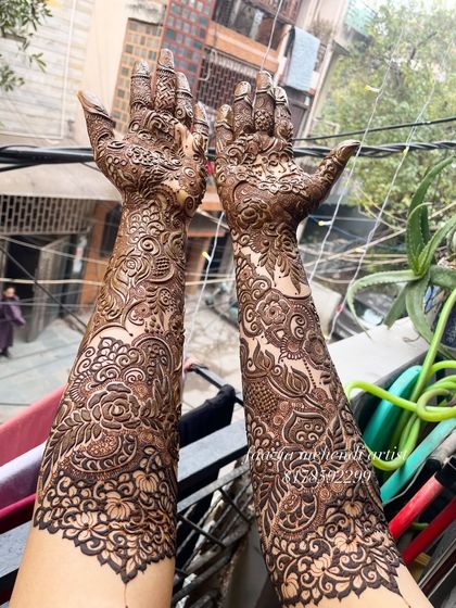 I apply mehendi for weddings and festivals, covering hands and feet with detailed designs, using natural henna for a deep stain and matching any style you want.